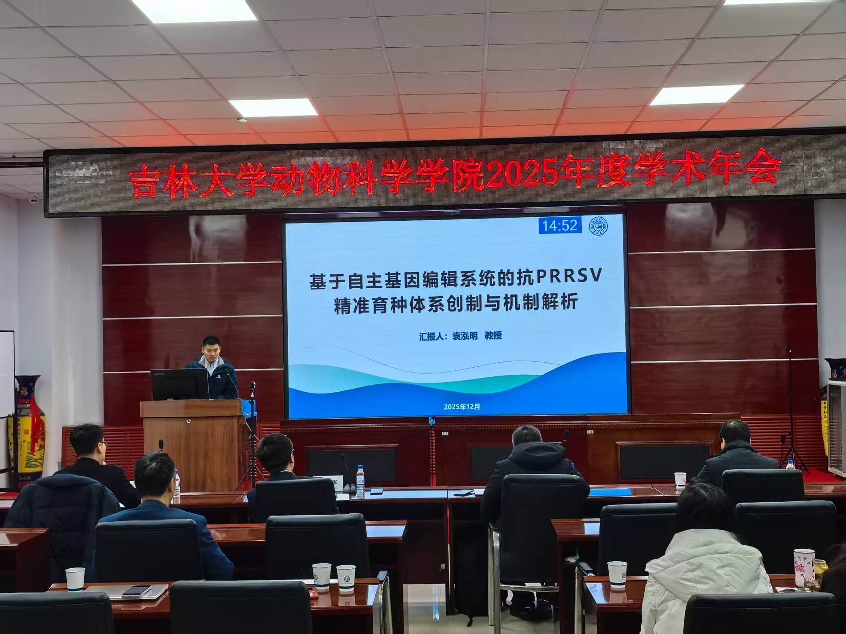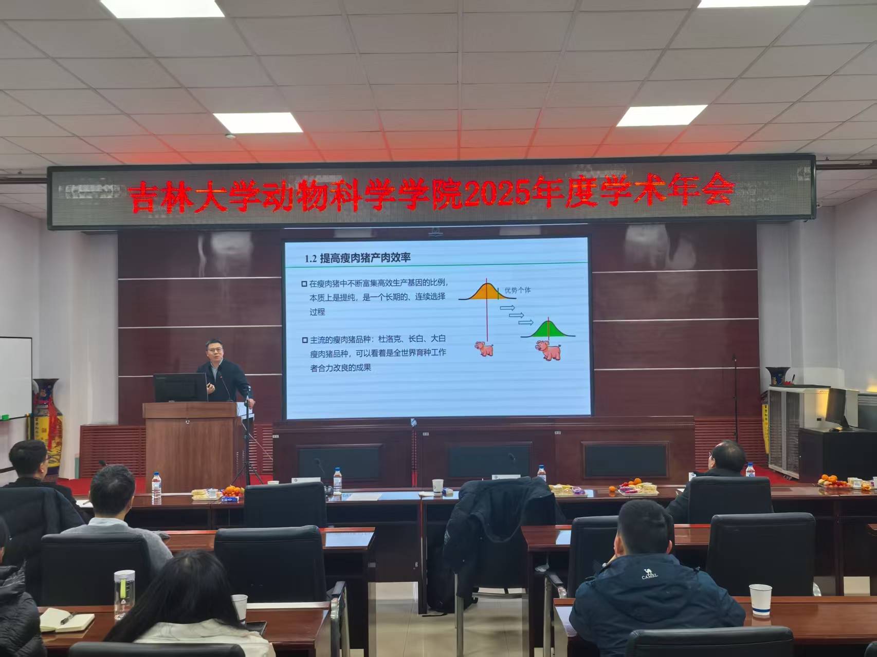2025年12月29日,动物科学学院在学院一楼会议室高质量举办2025年度学术年会。学院青年教师代表、新引进教师和在站博士后袁泓明、陈佳欢、别路垚、黄炳旭、郑毅、江秋雨、张绍萱、郝杨、王佳琪、尚丽君、张哲、钱育强、邵陶祺、曲赫选等14位教师分别在学术年会上作研究报告。年会分别邀请国家高层次人才、中国农业大学动物科技学院院长王军军教授、华中农业大学李新云教授、华南农业大学赵江潮教授、浙江大学熊波教授、南京农业大学陈彦廷教授、吉林农业大学车东升教授担任评委和点评专家。年会由动物科学学院副院长袁宝教授主持。动物科学学院院长孙博兴教授、副院长李纯锦教授、副院长逄大欣教授、各系主任及师生60多人参加了年会。